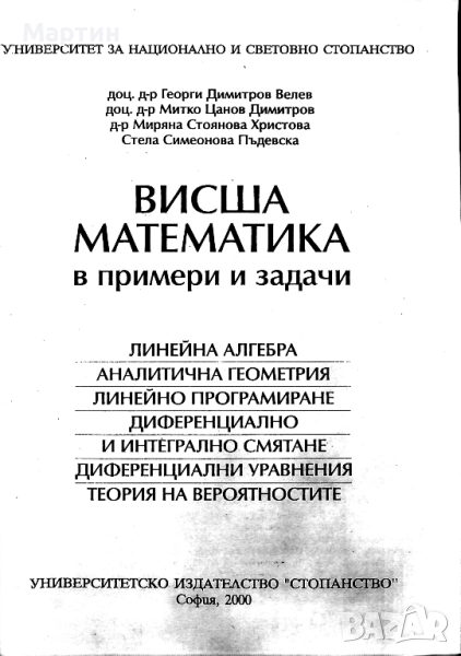 Висша математика в примери и задачи, Георги Велев, УНСС, 2000 → Обява 51477636