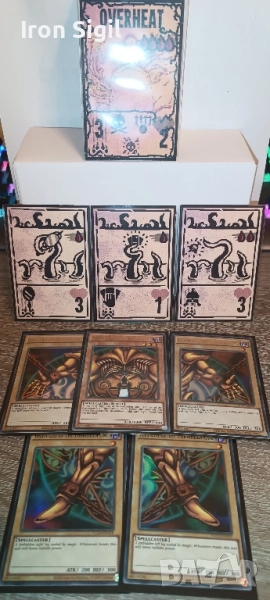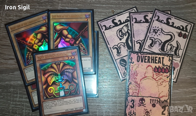 Снимките показват реалните карти (включено сравнение с Yu-Gi-Oh/Exodia за мащаб и усещане).