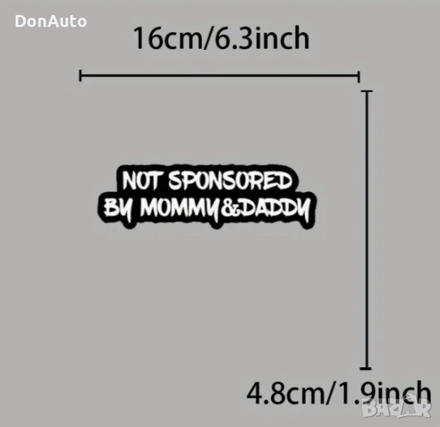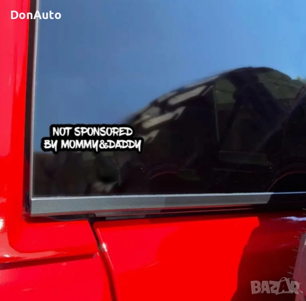 Стикер „ Not Sponsored by Mommy & Daddy“ / "Неспонсориран от мама и тати" – забавен автомобилен стикер за стъкло и броня