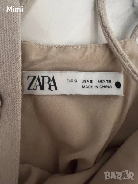 Ленена рокля на Зара с камъчета в предната част отзад е изчистена размер S обличана е много рядко в добро състояние