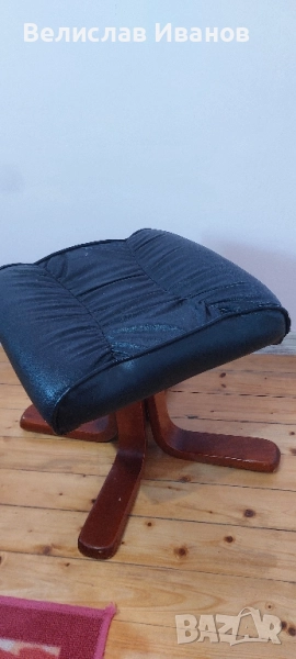 Ретро кожена табуретка с дървени крака. Кожата няма скъсано. Отлично състояние.