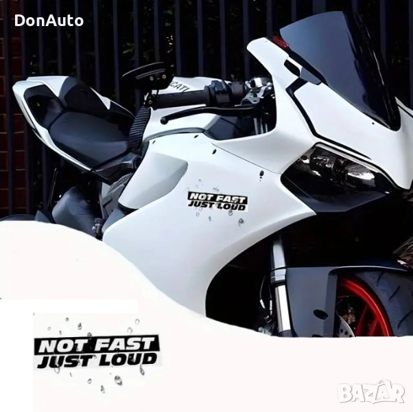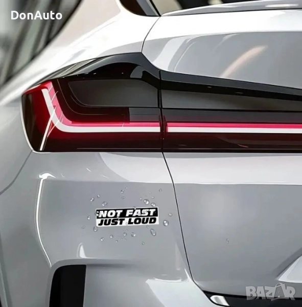 Добавете забавен и провокативен акцент към автомобила или мотора си с този **PVC стикер „Not Fast Just Loud“ („Не бърз, просто шумен“) **. Перфектен за брони, прозорци и други гладки повърхности, стикерът е устойчив на вода, ултравиолетова светлина и атмосферни влияния.