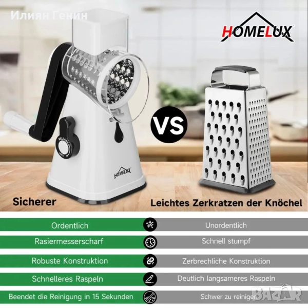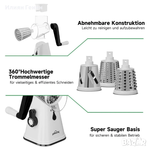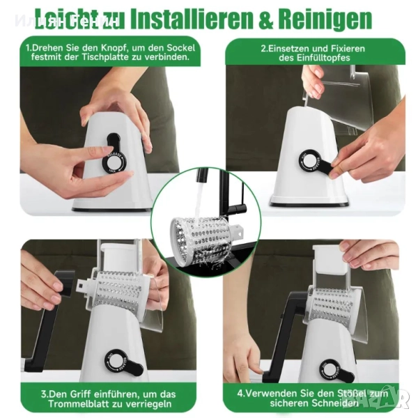 Ренде HOMELUX барабан, 3-в-1 резачка за зеленчуци, ренде за сирене с манивела, машина за рязане на зеленчуци - 35.00лв.