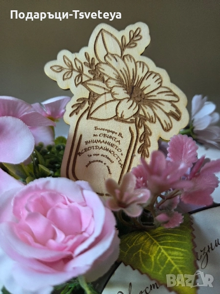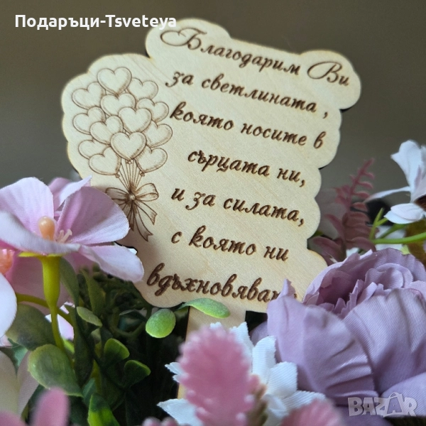 🌸 Красив и изящен дървен топер, който превръща всяко цвете в специален знак на благодарност.