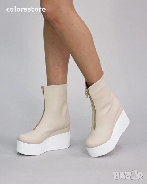 Боти на платформа - бежова кожа - LT40