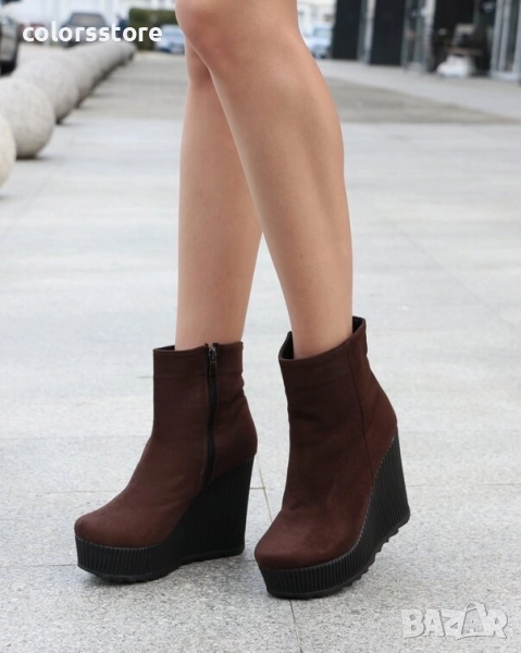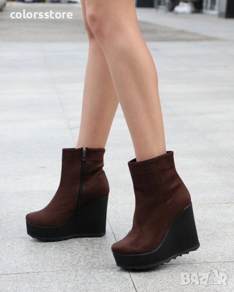 Боти на платформа - кафяв велур с черно ходило - BNP1