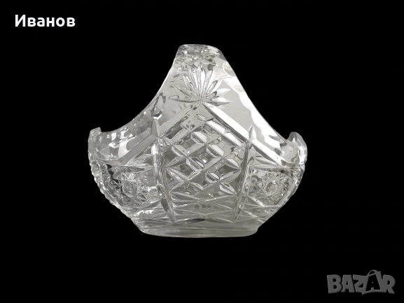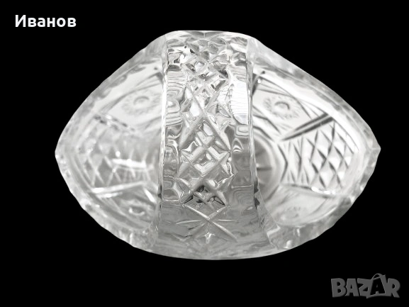Декоративна кристална кошничка, фруктиера или бонбониера. Изработена е от масивен, тежък оловен кристал. Отличава се с ръчно шлифовани или гравирани мотиви, често включващи „звездни“ (hobstar) или диамантени шарки. Дизайнът е класическо Бохемско - Bohemian стъкларство. Производител Bohemia Crystal - Чехия. Нова Масивна Винтидж Популярна като ретро и антикварна декорация за дома.