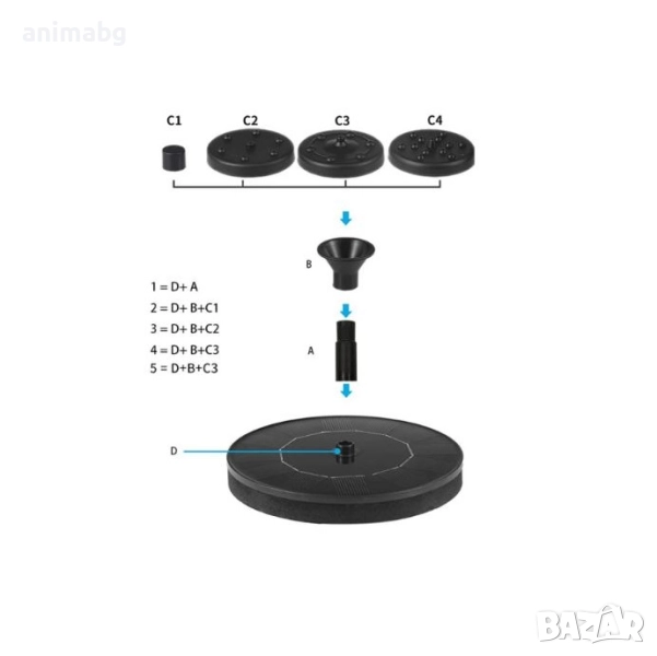 1. 4 различни дюзи могат да отговорят на различните нужди на вашата слънчева водна помпа за перфектна височина или форма на струята.