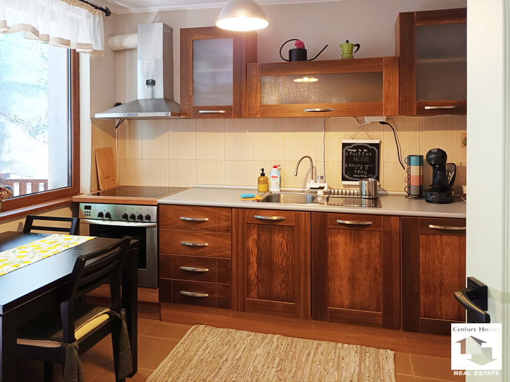 Апартаментът предлага широка гама от кухненски уреди, включително микровълнова фурна, хладилник, кафе машина, термокана, стъклокерамични котлони и вградена фурна. Всекидневната е обзаведена с мека мебел, бюро и тв секция.