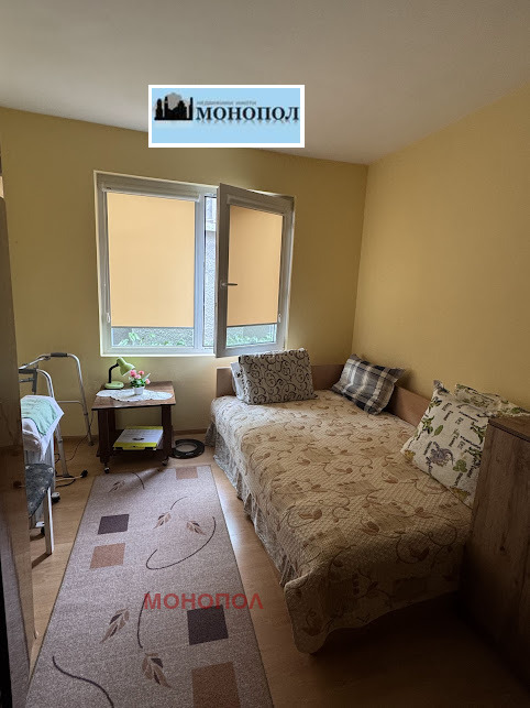 Предлагаме на Вашето внимание втори етаж от триетажна къща с разпределение на непреходен двустаен апартамент. Сградата е разположена в непосредствена близост до езиковата гимназия, ученическите общежития, както и до сгради на ЮЗУ, на общинската и държавна администрация. На пешеходно разстояние е идеалния център.