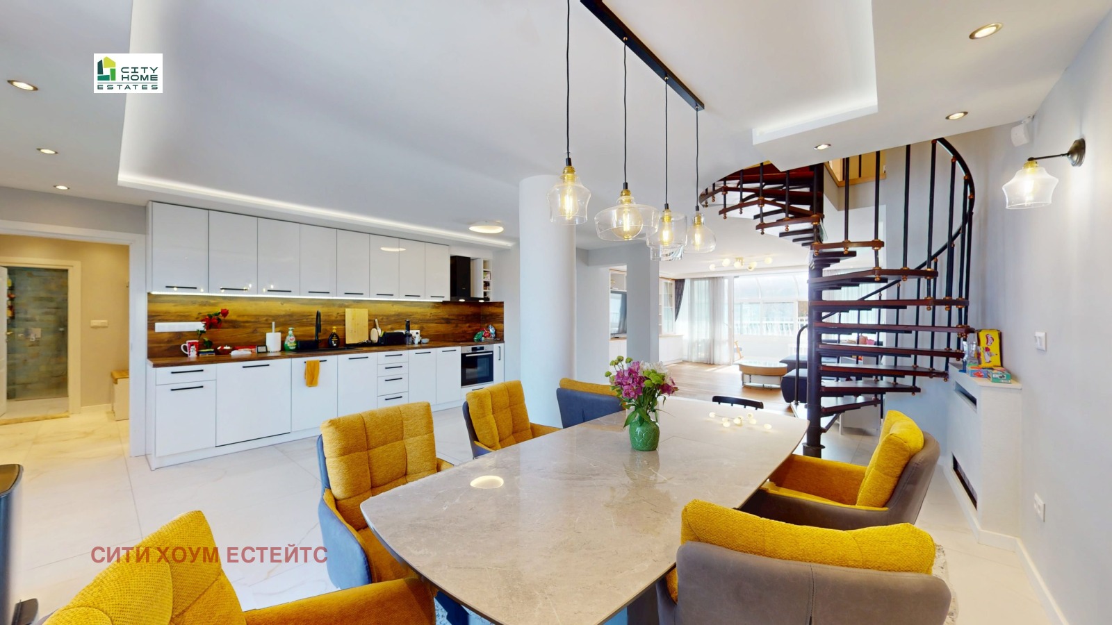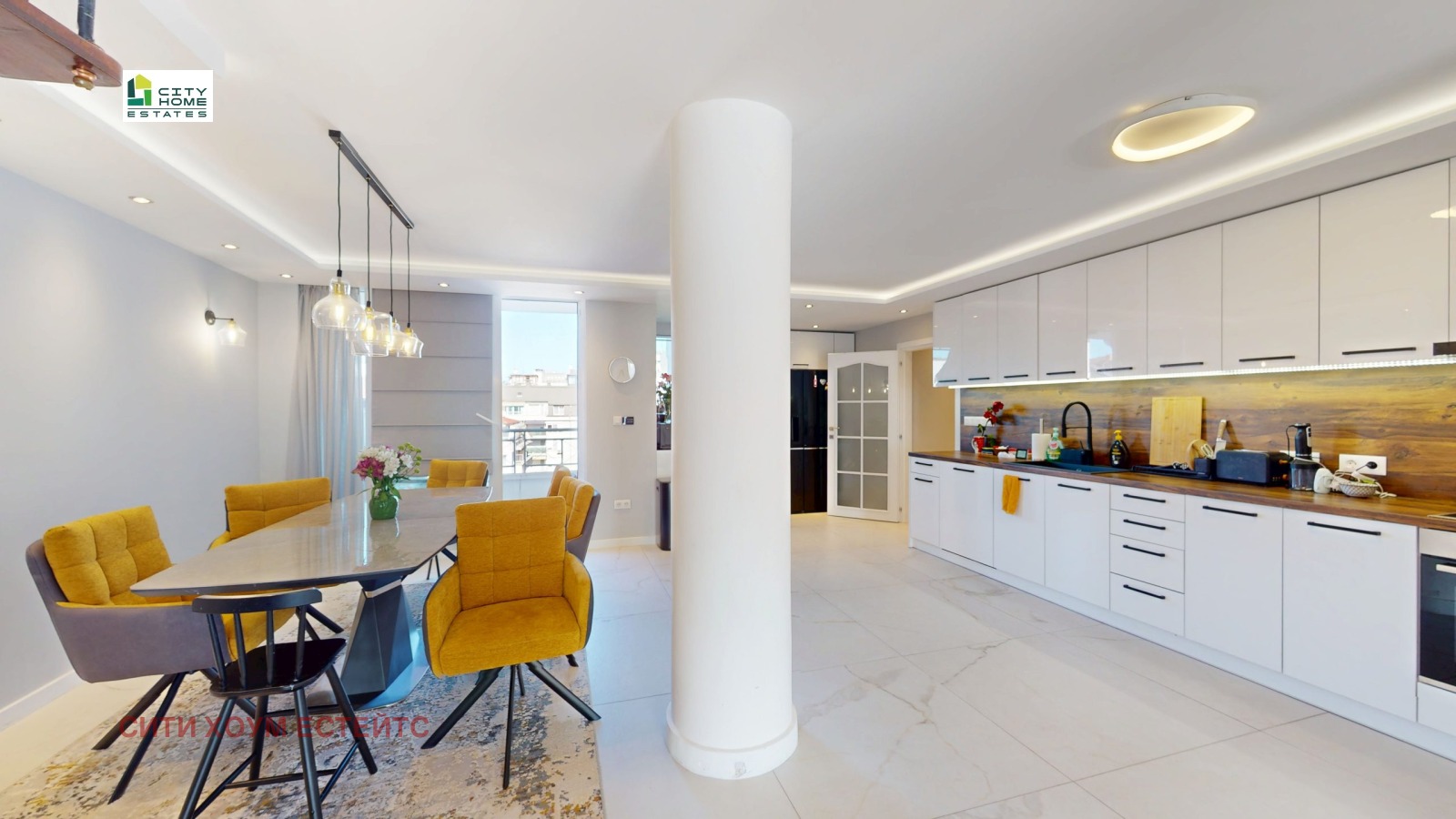 Разпределението е изключително функционално обширна дневна с площ от 70 кв.м, четири самостоятелни спални, две елегантно завършени бани и отделно мокро помещение с пералня и сушилня. Апартаментът е с югоизточно и югозападно изложение, което гарантира изобилие от естествена светлина през целия ден и създава усещане за уют и топлина във всяко помещение.