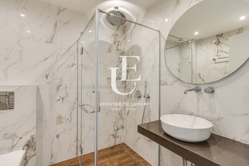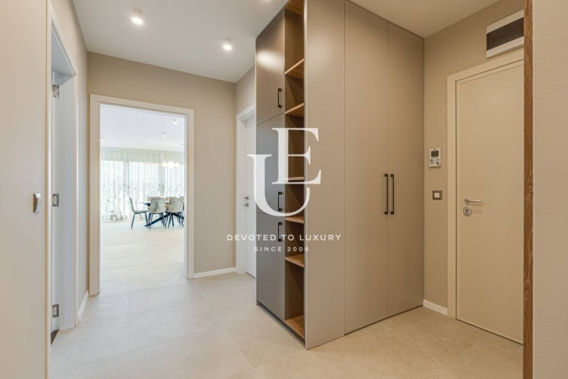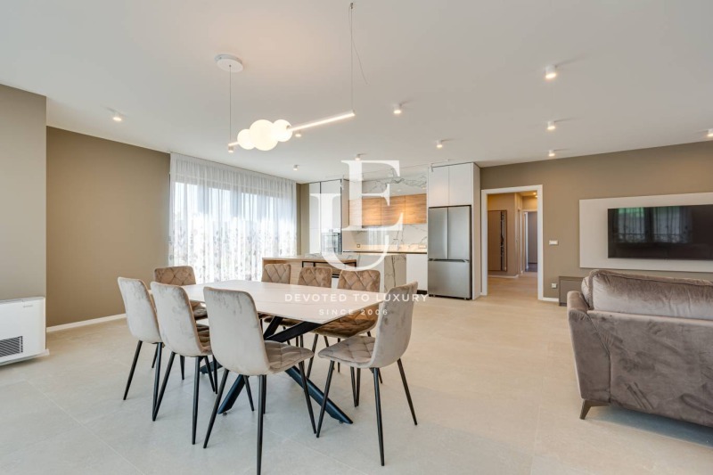 Апартаментът е обзаведен по дизайнерски проект с изключително внимание към детайла и предлага висок клас електроуреди Bosch. Отоплението и охлаждането са решени с термопомпена система, гарантираща енергийна ефективност и комфорт през всички сезони.