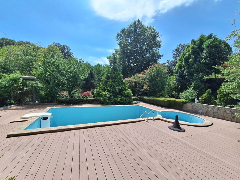 Имотът впечатлява с външния си вид, добре поддържано състояние и разнообразието от удобства, като например голям плувен басейн, веранди, барбекю, градина, както и зони за отдих на закрито и открито!