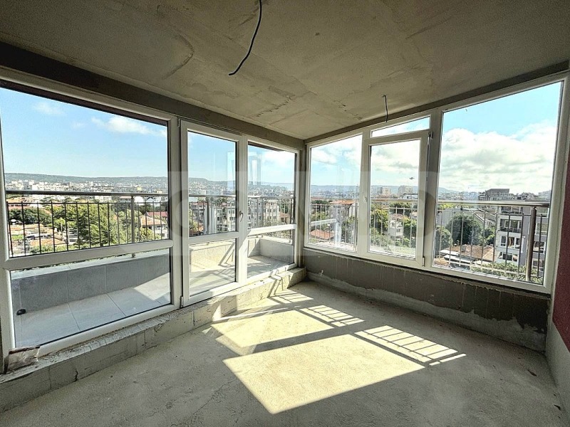Имотът е разположен на осми етаж, със следното разпределение: коридор, просторна всекидневна 30 кв.м., две спални, три тераси с нескриваема панорама към Варненското езеро, санитарен възел и килер.