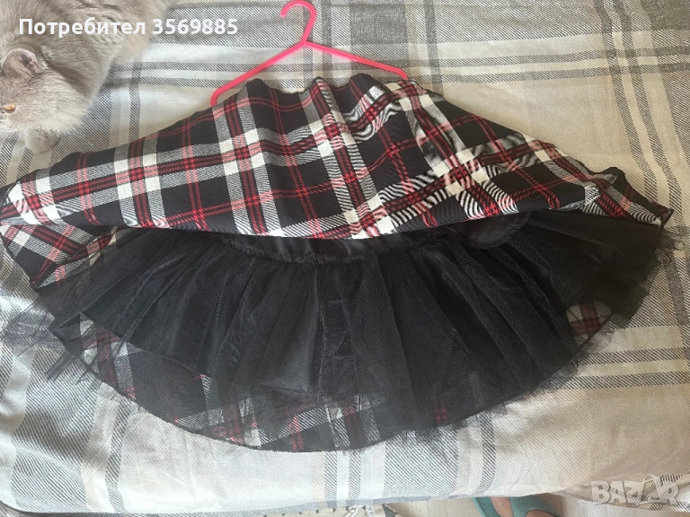 Предлагам обличана само веднъж пола клош на Контраст, размер 146. Полата е без забележки, изглежда много добре в комбинация с риза или дори бяла тениска. Покрита с нежна дантела, скрит цип и джобчета, тюлена подплата.