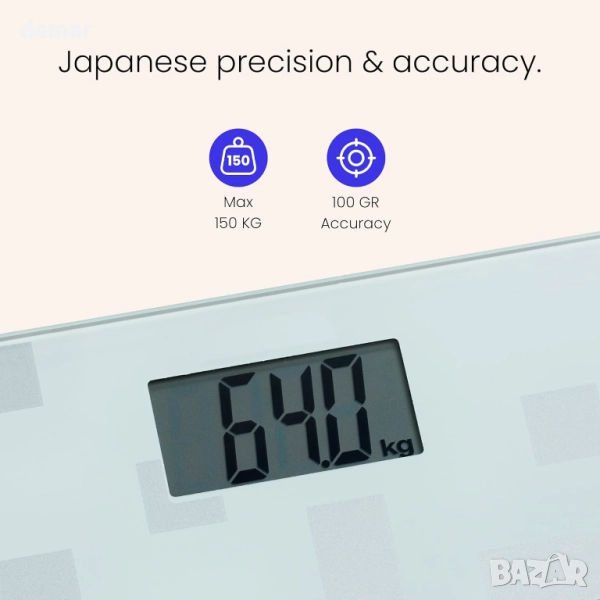 Тънкият, ултратънък стъклен дизайн в елегантен бял цвят придава модерен щрих на банята, с лесно активиране с докосване и незабавни резултати. Големият, ясен LCD дисплей прави показанията лесни за виждане, а точните измервания до 150 кг с фина прецизност поддържат ежедневно проследяване. Изработен с доверено японско майсторство, той съчетава стил, надеждност и лекота на използване.