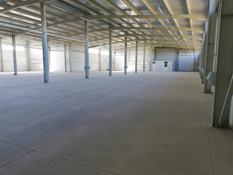 The building is made of steel supporting structure and walls of thermal panels. Wall windows on all facades. The height is 7.22 m to the ridge, clearance 5.60 m .The floor is made of polished concrete, the doors are automated with a height of 4.3 m. There are built-in household and sanitary facilities. The yard is concreted. The building is new, completed in 2021.