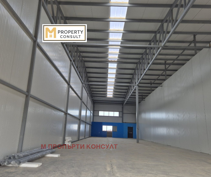 Отдава под наем складово и промишлено помещение с асфалтиран двор в индустриална зона. Помещението е на вход и изход на гл. път, с височина 6 м., стени и покрив от термо панел 6 см, секционни врати, подова настилка от нов шлайфан бетон, вода, канал, санитарен възел и офис.