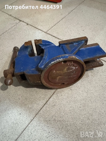 Метален менгеме с Въртяща основа, подходящо за работилница или домашна употреба. Масивна конструкция, стабил захващане. В добро работно сьстояние,