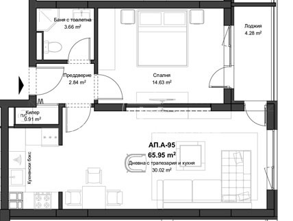 Титан Пропъртис има удоволствието да Ви представи двустаен апартамент находящ се в кв.Кючук Париж.