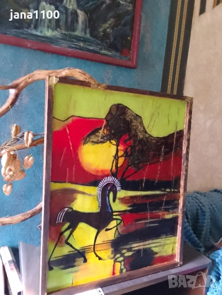 Авторска картина с размери 50/60 см Акрил,варак,рамка,финален лак.Основата е каширан фазер
