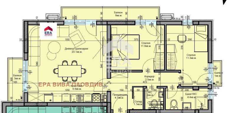 -Просторна дневна с кухненски бокс и излаз към тераса