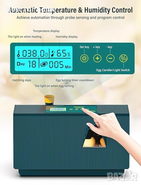 пъдпъдъчи яйца или други птичи яйца, напълно автоматичният инкубатор предлага максимална гъвкавост за оптимални условия за развъждане.
