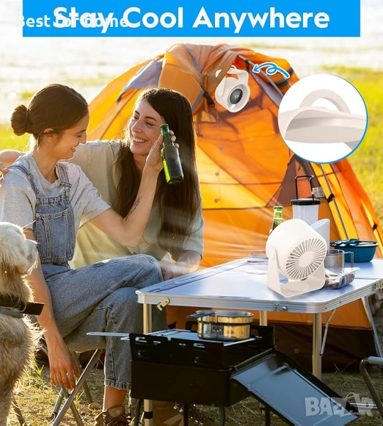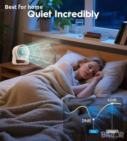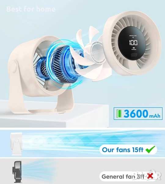 Aupauter Настолен вентилатор, Настолен вентилатор за охлаждане, Цифров дисплей и стенен монтаж, Тих преносим вентилатор за нощно шкафче, Пътуване, Къмпинг, Офис, Кухня, Бял