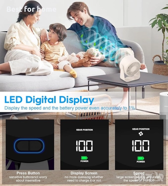 Преносим настолен вентилатор за охлаждане с цифров дисплей