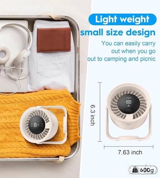 Настолен вентилатор за охлаждане, цифров дисплей и стенен монтаж, тих преносим вентилатор за нощно шкафче, пътуване, къмпинг, офис, кухня, бял