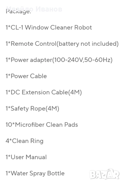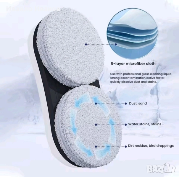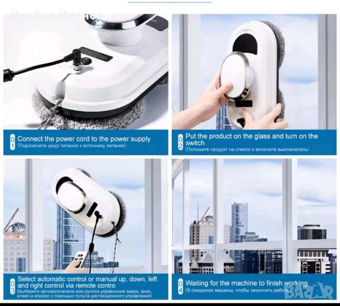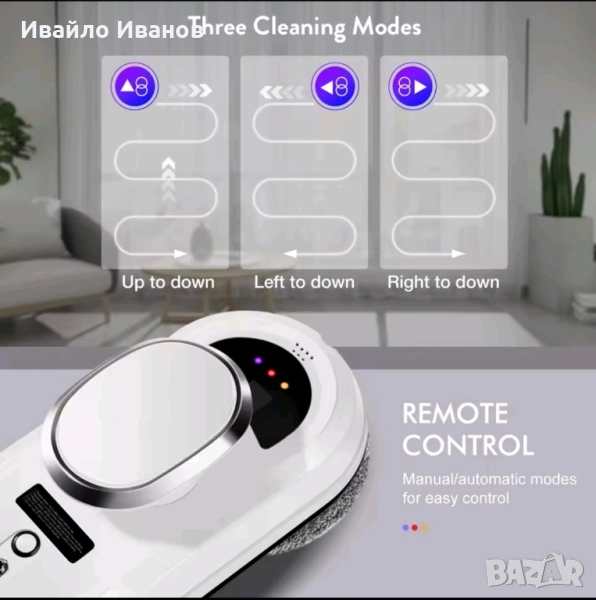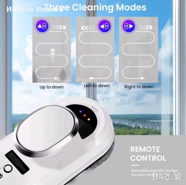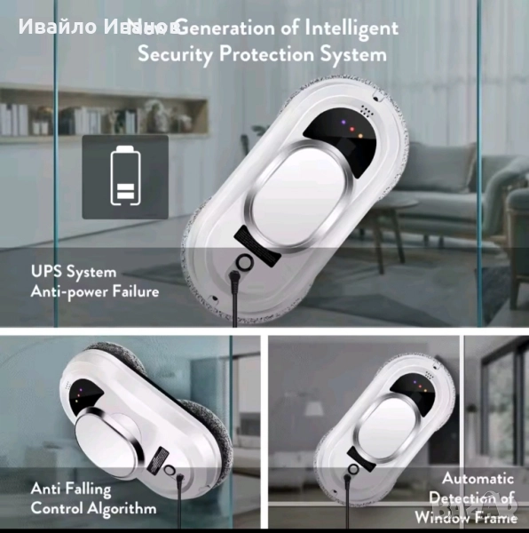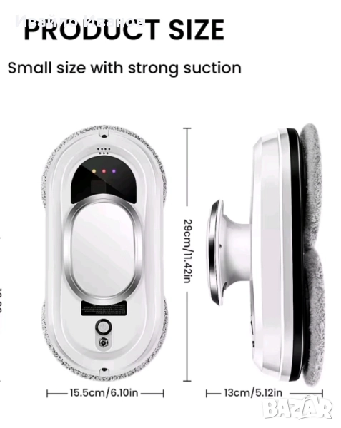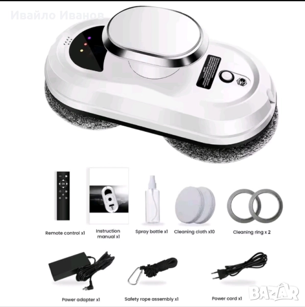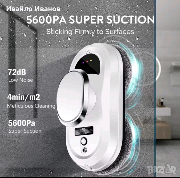 Вакуумен смарт робот за почистване на прозорци, огледала, мрамор, фаянс, теракота, ламинат и др. гладки повърхности. Добавени са допълнителни 10 чифта почистващи комплекта за мокро и сухо полиране. Почистете прозорците без усилие и без следи с интелигентния робот на CHOVERY – модерно устройство, което съчетава всмукателна мощност, технология за навигация с изкуствен интелект и безпроблемна работа за безупречни резултати. • Всмукателна мощност 5600 Pa – мокро и сухо почистване Оборудван с мощен мотор и функция, чувствителна на натиск, роботът предлага сигурно залепване към всяка гладка повърхност, като ефективно почиства замърсявания, водни следи или прах, както със сух, така и с мокър моп. • Напълно автоматична работа – с един бутон Благодарение на системата AI Smart Path, роботът автоматично разпознава ръбовете на прозорците и проследява ефикасни маршрути за почистване. С едно просто натискане на бутон, автоматичното почистване започва - без усложнения. • Двойни ротационни мопове – резултати без следи Технологията на двойно въртящия се моп ефективно премахва упорити петна и осигурява равномерно почистване без следи или драскотини. Идеален за прозорци, огледала, плочки или стъклени панели и др. • Включено дистанционно управление(без включени батерии) – Контролирайте посоката, стартирайте/спирайте или активирайте автоматично почистване директно от разстояние с помощта на включеното дистанционно управление. Безопасна и удобна употреба дори за труднодостъпни прозорци. • UPS захранване – безопасност в случай на прекъсване на електрозахранването Роботът е оборудван с интегрирана UPS система, която държи устройството прикрепено към прозореца до 20 минути в случай на прекъсване на захранването, предотвратявайки случайни падания.