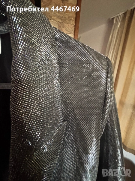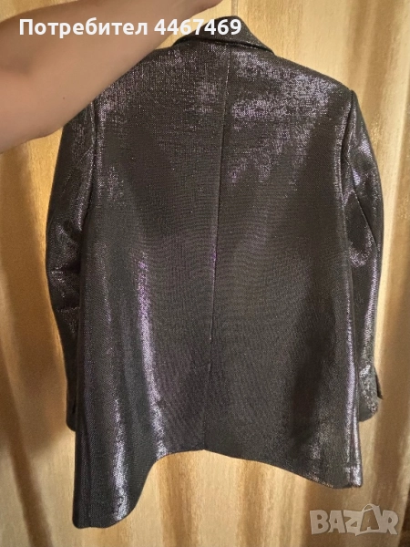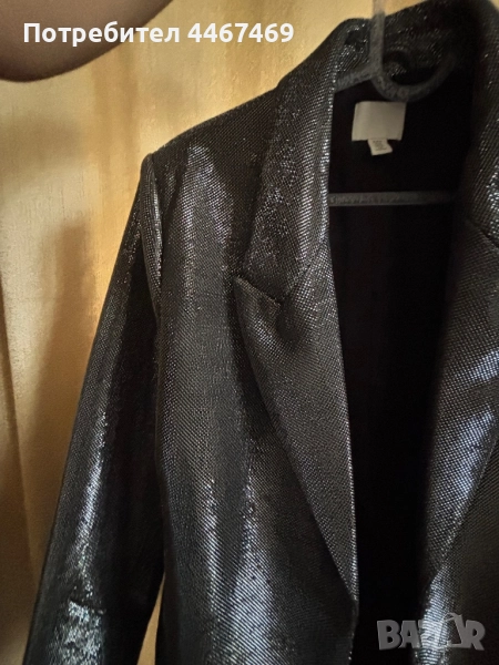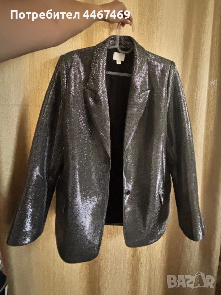 Уникално парти сако. Супер лъскава материя, овърсайз, размер М. Стои уникално. Зимно е, дебело е. Идеално за върху елегантна рокля. С лека забележка, не се почти не се забелязва . Марката е HM, от новогодишната колекция.