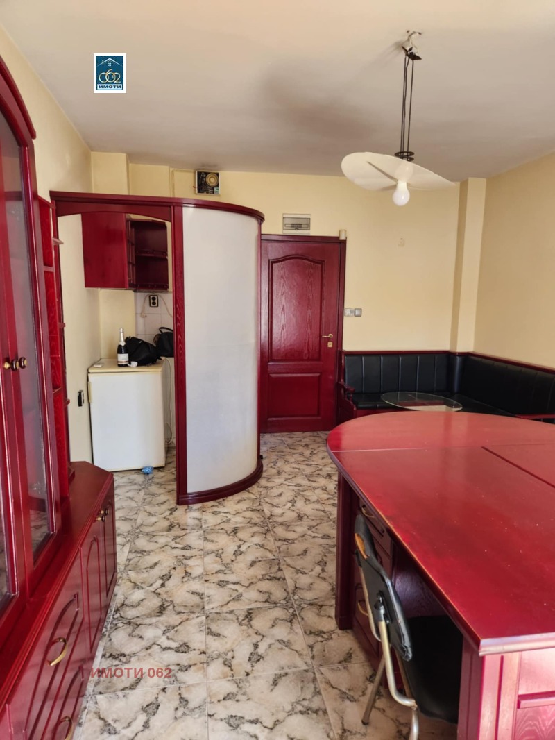 Помещението е в много добро състояние. Разполага със собствена тераса, обзавесено е и е обособен кухненски кът и мивка хладилник и шкафове.