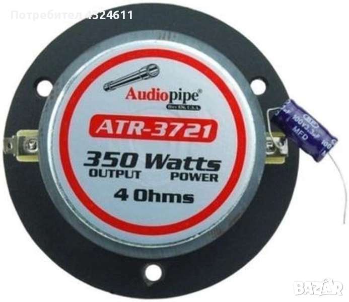 Audiopipe ATR-3721 е високоефективен Super Bullet tweeter, създаден за мощно и чисто възпроизвеждане на високи честоти. Създаден за автомобилни аудио системи и професионално озвучаване, този 3.75-инчов титаниев високоговорител предлага максимална мощност от 350W, висока чувствителност, и устойчивост при високи натоварвания.