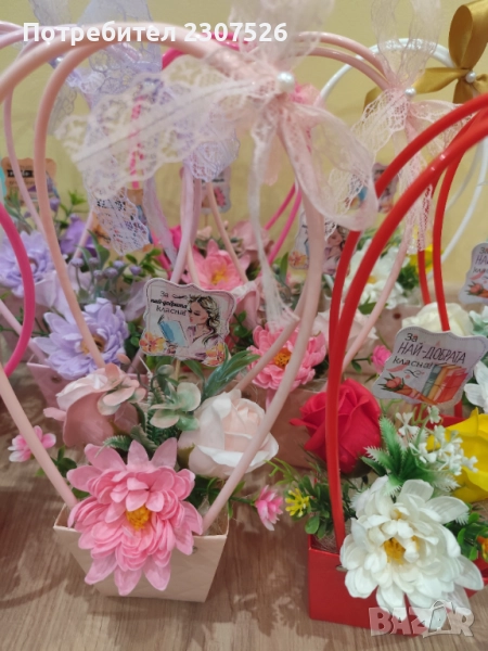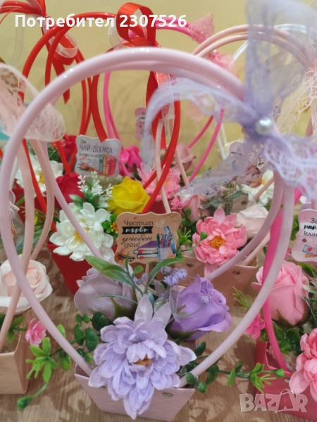 Букети от пластични сапунени цветя подходящи за 15 септември