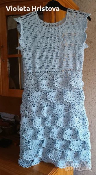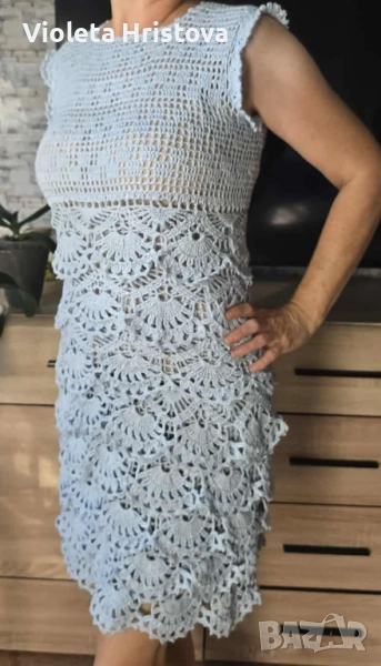 Дамска рокля изработена на една кука.Прежда памук,вискозна коприна.