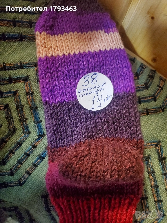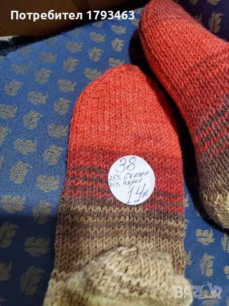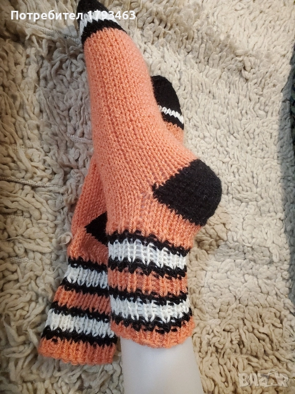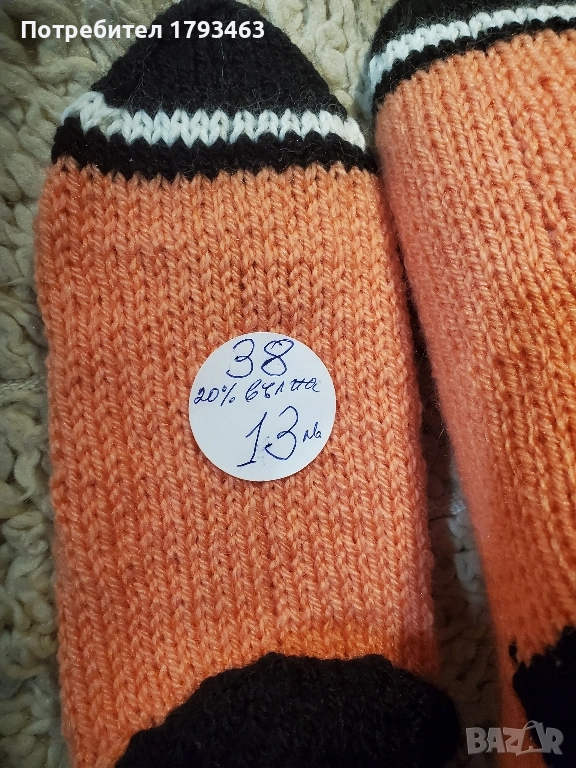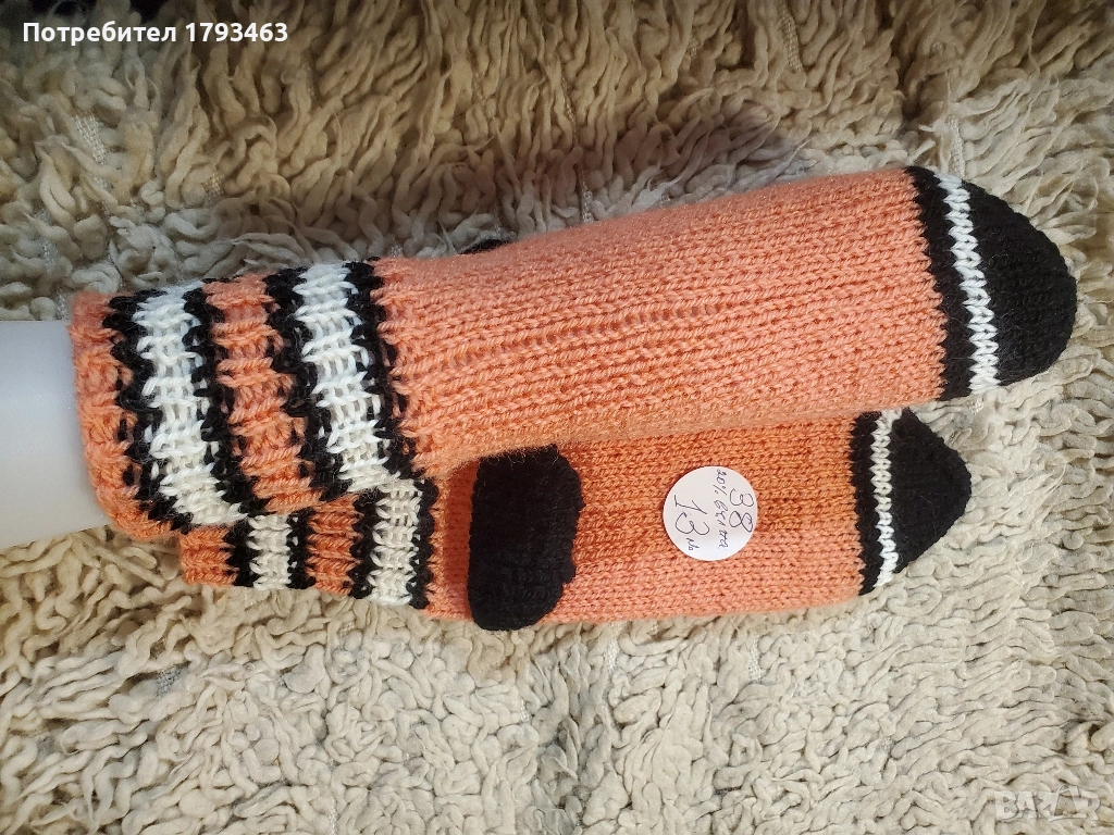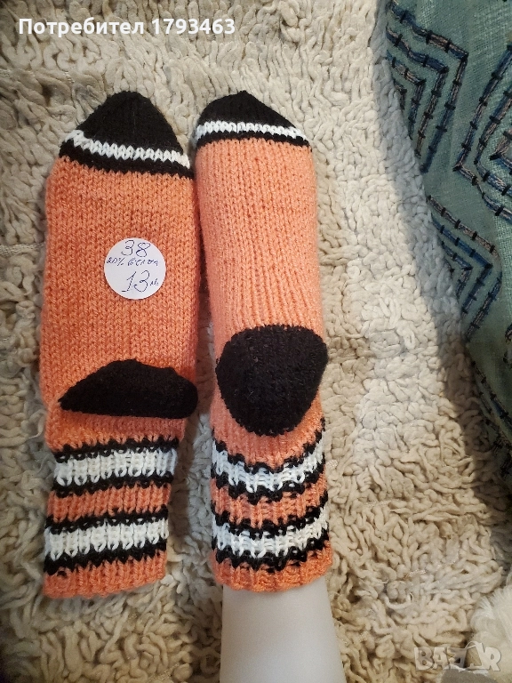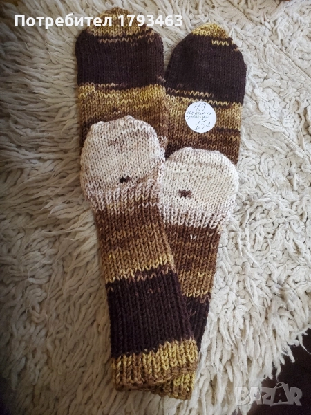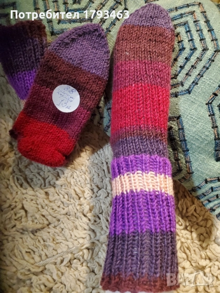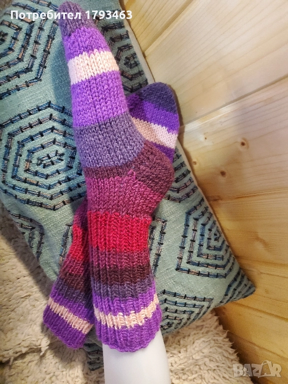 Ръчно плетени дамски чорапи размер 38. Преждата съдържа 25% вълна и 75% акрил. телефонът до 31 октомври ще. отговаря само на вайбър и уотсап. Също може да пишете.