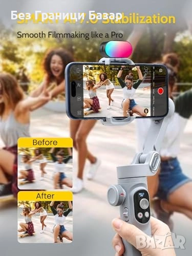 Нов Професионален Гимбал за Телефон със Светлина и Зуум Контрол Стабилизатор