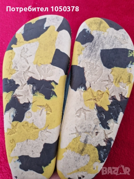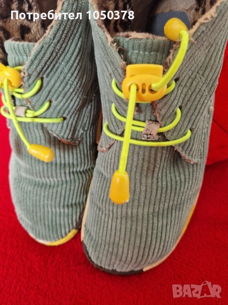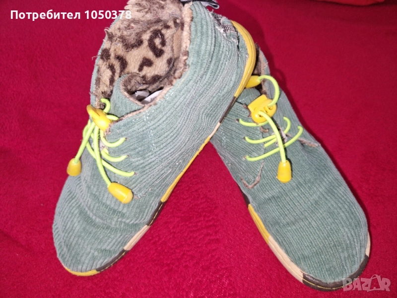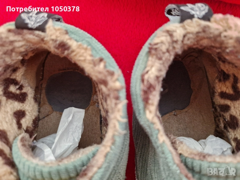 Със сменени ластични връзки. Вътрешно протъркване на петата и завалване на "леопардовата" пухкавина. Моделът е без стелка.