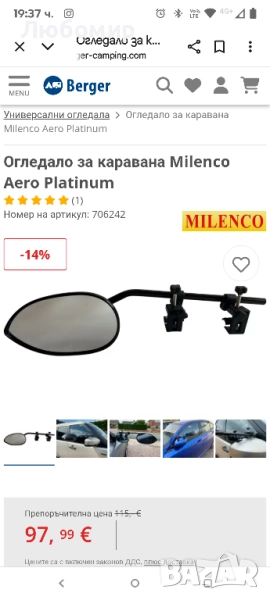 Огледало за каравана 2 бр.Milenco Aero Platinum