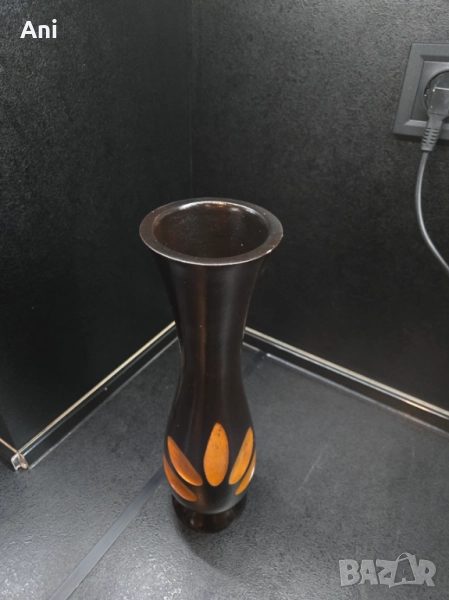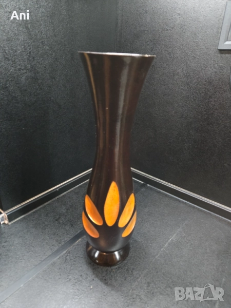 Страхотна бамбукова ваза с издялкана и боядисана част.
