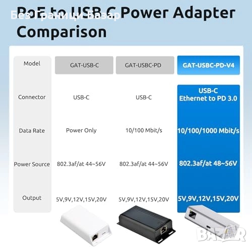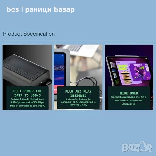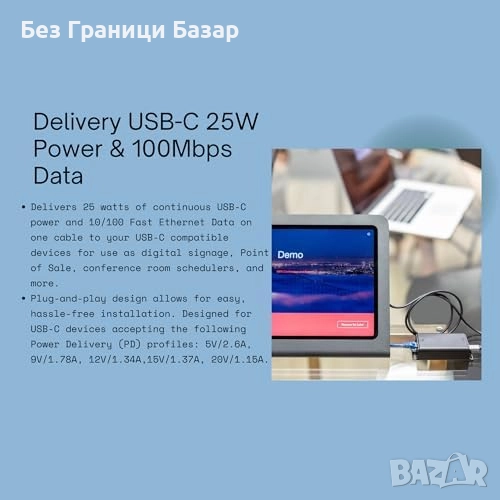 Нов PoE+ USB Type-C сплитер 25W 100Mbps за Pixel, Surface, Galaxy