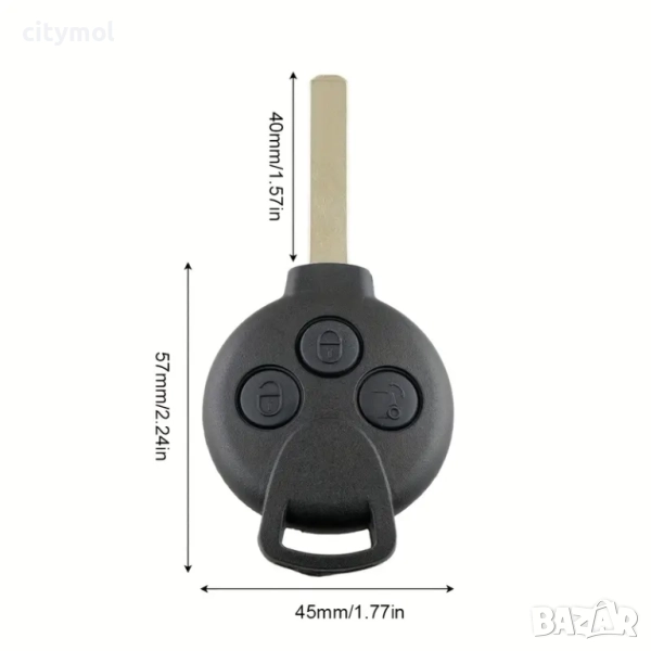 Кутийка за ключ с 3 бутона за Smart ForTwo / ForFour с острие HU