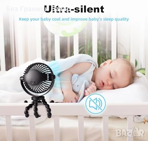 Нов Вентилатор за Бебе, Количка, Колa – 3 Скорости, Безопасен и Тих