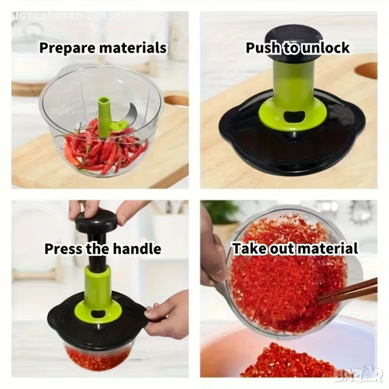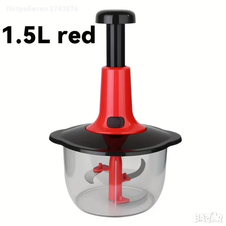 Ръчен чопър за зеленчуци - капацитет 1.5, пресов тип, без електричество, многофункционален кухненски → Обява 51488274