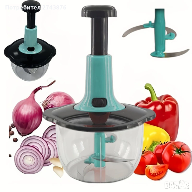 Ръчен чопър за зеленчуци - капацитет 1.5, пресов тип, без електричество, многофункционален кухненски