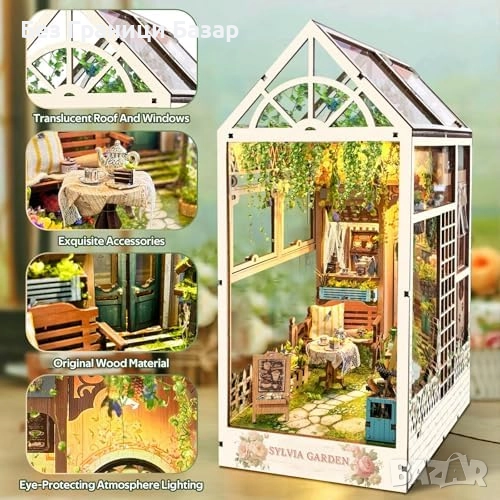 Нова Мини къща Book Nook 3D пъзел с LED – Tea Time в градината Украса