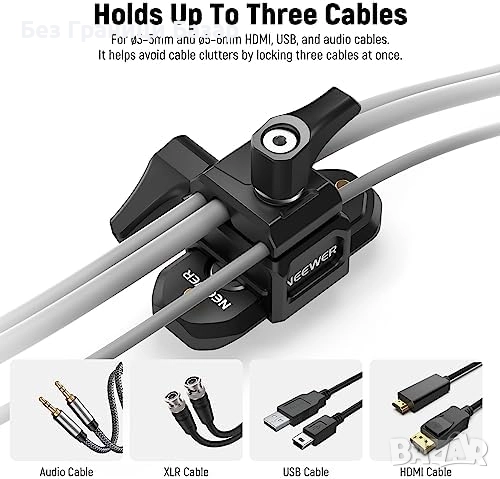 Закрепва едновременно до 3 HDMI, USB, аудио или DC кабела (ø3–5мм и ø5–6мм)