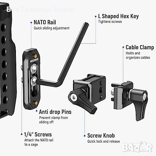 Нов HDMI Кабелен Фиксатор с NATO Скоба за SmallRig NEEWER Клетки