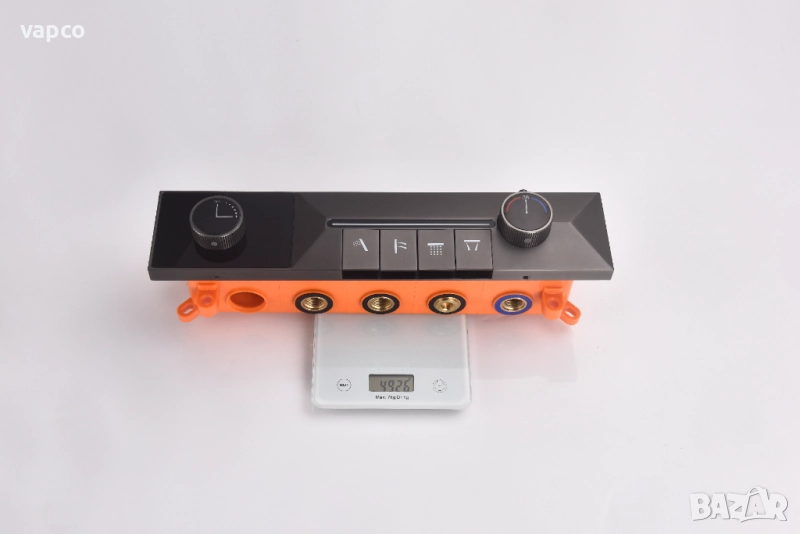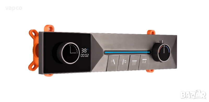 - Дисплей, показващ температурата на водата, захранван от хидрогенератор, без нужда от батерии или свързване с електропреносната мрежа